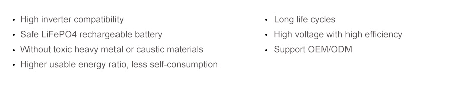 | Lifetime | 6, 000 Cycles@80% DOD |